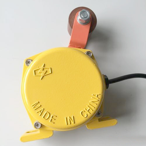 采用下垂鏈球與物料接觸的 檢測方式。當膠帶運 送物料時,物料推動球并帶擺臂向一側偏移,若偏移角度大于20?時,內部開關動作,輸出一組開關信號
